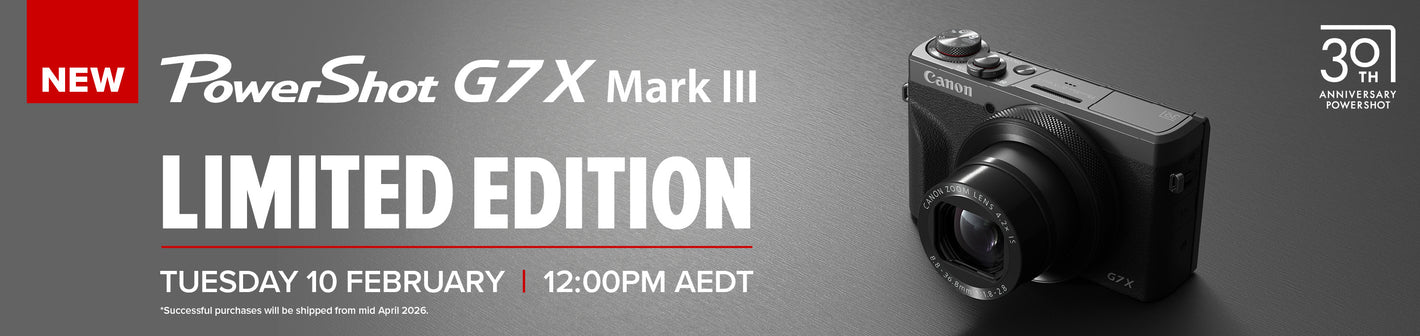 This limited-edition G7 X Mark III is a true one-time drop, finished in a sleek graphite body with an exclusive 30th Anniversary stamp and refined premium details throughout. Designed to celebrate three decades of PowerShot, this is a collector-level release you won’t see again once it’s gone.