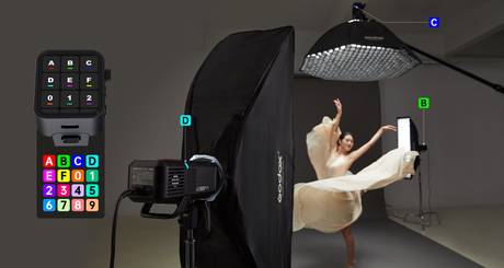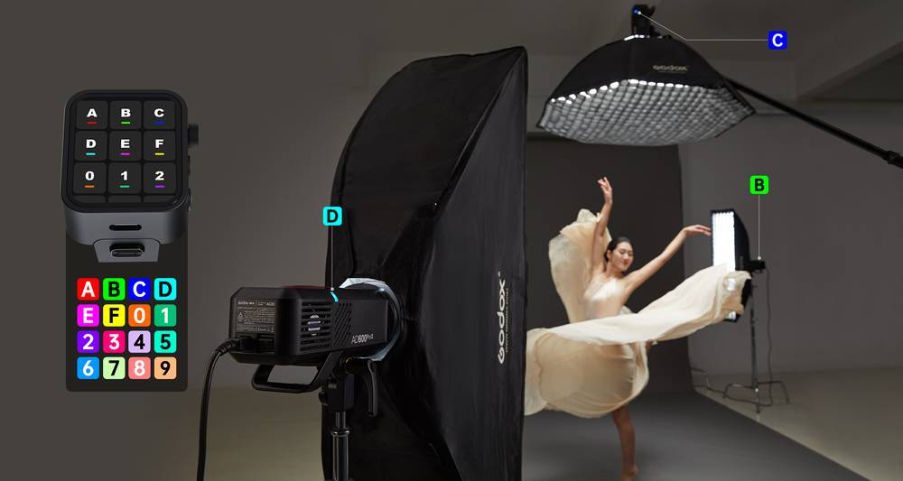 The AD600Pro II is part of Godox's 2.4 GHz wireless X system with a range of 328', featuring 16 groups and 32 channels that facilitate the use of multiple lights. Use the optional X3 trigger or the XPro II and X2 triggers to wirelessly control the flash head. The brand presents what they call "RGB Colour Identification", meaning that each of the 16 groups will display a different colour locally on the flash head for easy group identification even from a distance.